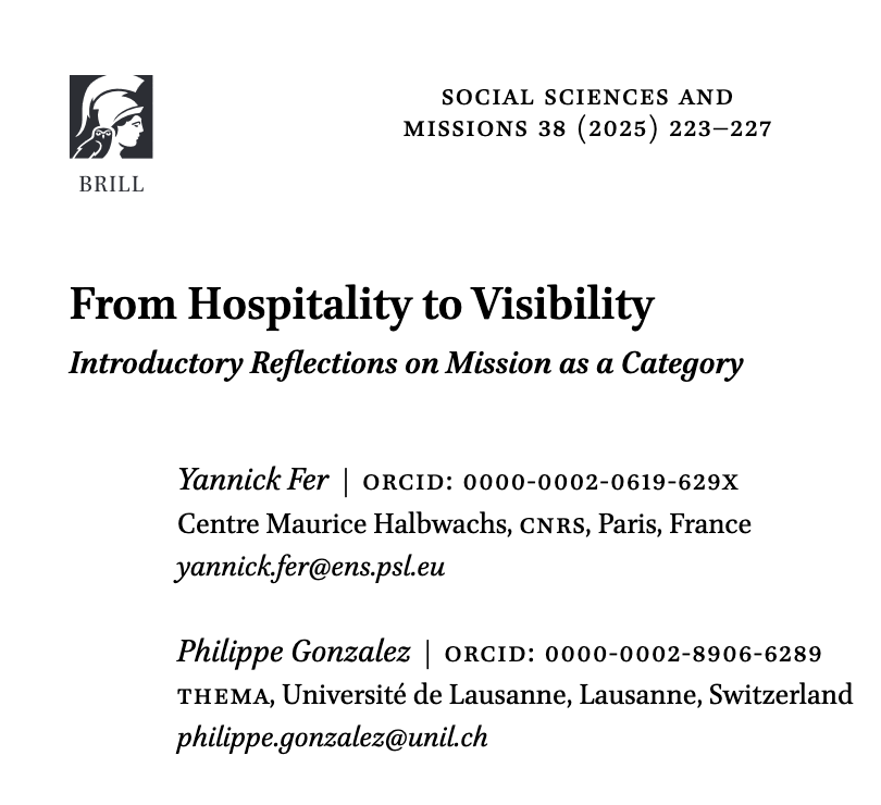 A brand new issue of Social Sciences and Missions has been coordinated by Philippe Gonzalez (Lausanne University) with his colleague Yannick Fer (CNRS, France).